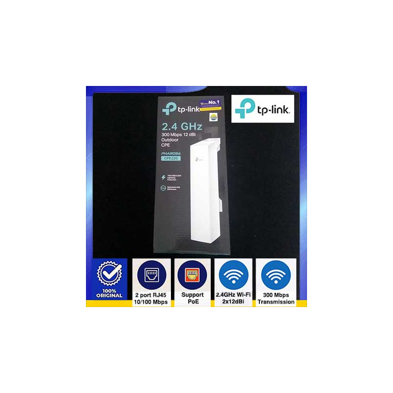 TP-LINK CPE Outdoor TP-LINK 2.4GHz 300Mbps 2x12dBi, CPE220 ditujukan sebagai solusi efektif untuk aplikasi jaringan wireless outdoor. Dengan aplikasi manajemen terpusat, menjadikannya ideal dan fleksibel untuk point-to-point, point-to-multipoint dan aplikasi jaringan Wi-Fi outdoor. Performa professional, dipadukan dengan design yang user-friendly, menjadikan CPE220 sebagai solusi ideal baik untuk pengguna bisnis maupun pengguna rumahan.