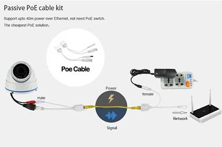 Sepasang kabel POE Splitter tahan cuaca dengan 2 konektor RJ45 (Cat5), 2 port RJ45 (Cat5), 1 set konektor & soket power DC ukuran 5.5mm(diameter luar) dan 2.1mm(diameter dalam) dan koneksi Plug-Play sehingga Anda dapat memperluas jaringan ketika tidak ada kabel/outlet listrik di lokasi alat(power adaptor disuntik via kabel LAN) untuk Access Point/kamera IP di luar ruangan yang kedap air dan debu