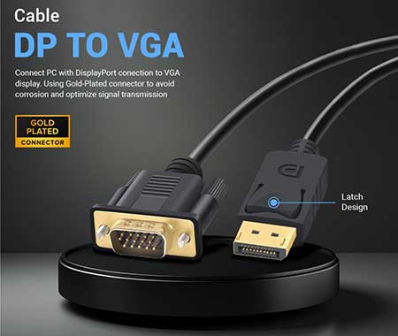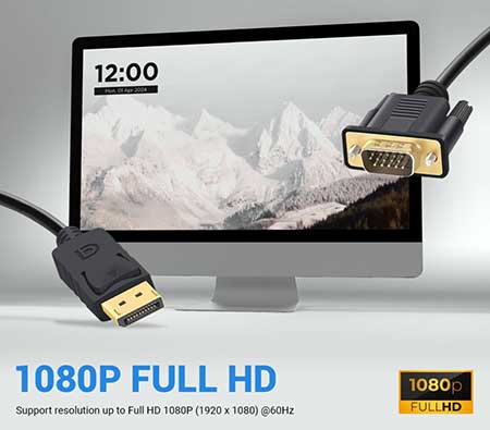 Kabel Displayport ke VGA NYK 1080P Adapter panjang 1.5 meter Memiliki resolusi hingga 1080P, plug & play, 1 konektor input DisplayPort dan output 1 konektor VGA Female sehingga Anda dapat menghubungkan DisplayPort pada produk Apple ke display VGA pada proyektor/TV/Monitor dan pemasangan instan bebas driver software untuk melihat foto/video/dokumen pada produk Apple(Mac) Anda.