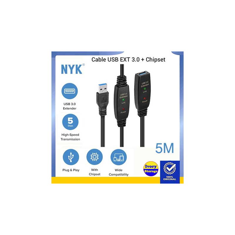 Kabel Extension USB3.0 NYK 5M+Chipset USB3.0 AM ke USB3.0 AF ( USB-USB )