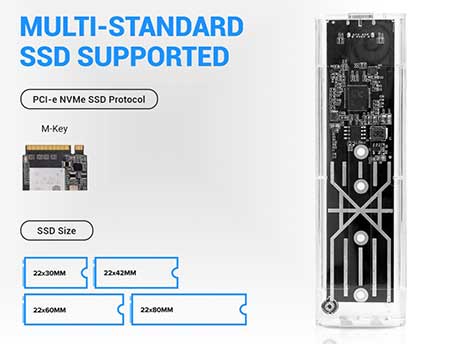 - Supports PCI-e NVMe M-Key / B&M-Key SSD protocol