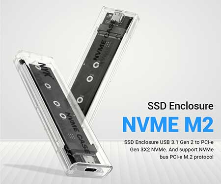 - USB 3.1 Gen 2 to PCI-e Gen 3X2 NVMe SSD Enclosure