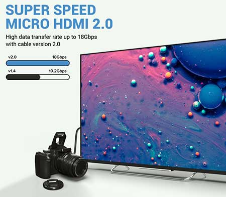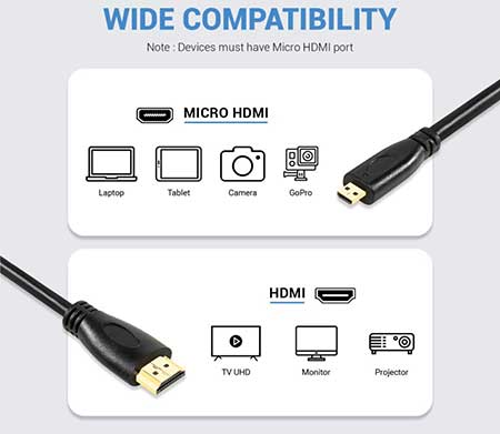 Memiliki 1 konektor input Micro HDMI Male dan output 1 konektor HDMI Male dan panjang kabel 1.5m sehingga Anda dapat menghubungkan dari port Micro HDMI pada smartphone Anda ke portHDMIpada Proyektor/Monitor/TV untuk melihat foto/video/dokumen Anda.