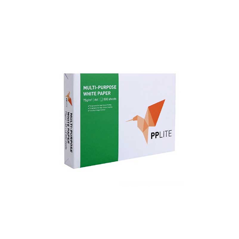 Kertas HVS PPLITE ukuran A4(21x29,7cm) dengan berat 75GSM, isi 500 lembar, permukaan putih terang & halus, menyerap tinta laser/fotocopy dan ukuran akurat sehingga Anda dapat mencetak dengan hasil yang baik dan seragam.
