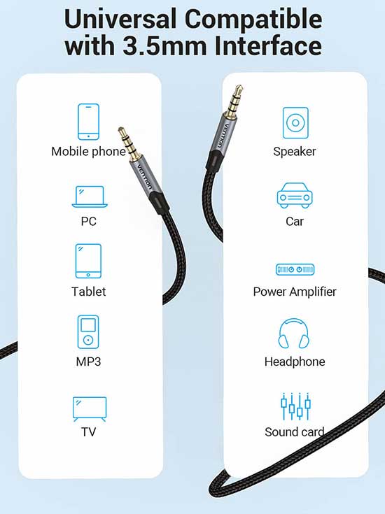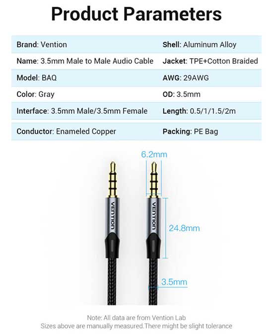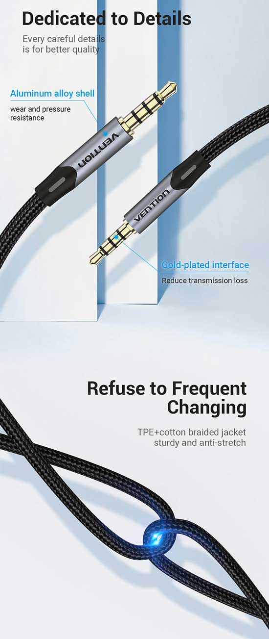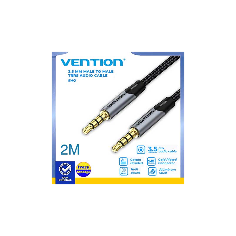 VENTION KABEL AUDIO STEREO TRRS AUX 3.5mm 4 POLE 2m BRAIDED - BAQHF merupakan produk dengan 2 bh jack Aux 3.5mm 4 Pole Gold-plated plug/Anti-interference, high fidelity Sound Quality, kabel hubung sepanjang 2m, Conductor: Enameled Copper, Jacket : cotton Baided sehingga Anda dapat menghubungkan peralatan berbasis konektor 3.5mm(TRRS Conector) 4 Pole untuk menyalurkan Audio dan percakapan/Voice(dari microphone) disaat bersamaan dengan jernih, handal dan berkualitas tinggi.
