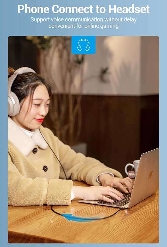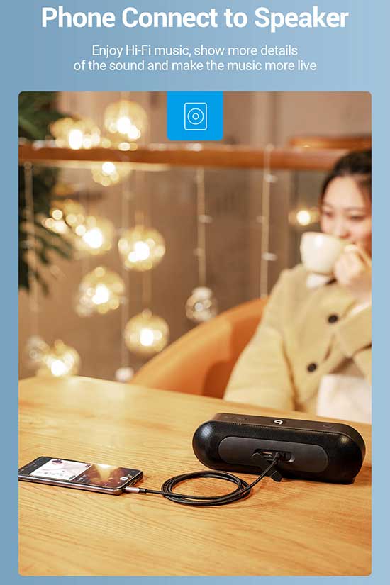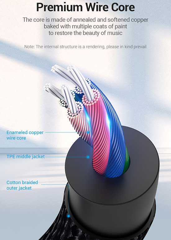 Produk dengan 2 bh jack Aux 3.5mm 4 Pole Gold-plated plug/Anti-interference, high fidelity Sound Quality, kabel hubung sepanjang 2m, Conductor: Enameled Copper, Jacket : cotton Braided sehingga Anda dapat menghubungkan peralatan berbasis konektor 3.5mm(TRRS Conector) 4 Pole untuk menyalurkan Audio dan percakapan/Voice(dari microphone) disaat bersamaan dengan jernih dan berkualitas tinggi.