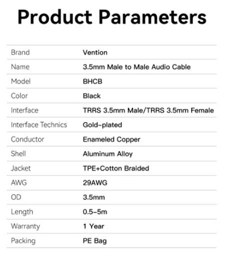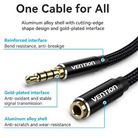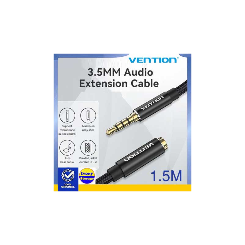 Kabel Ekstension Audio TRRS AUX 3.5mm 4 Pole VENTION 3m Stereo Braided BHCBI 1.5 meter merupakan produk dengan 1 1 bh male Aux 3.5mm 4 Pole Gold-plated plug, 1 bh female Aux 3.5mm 4 Pole Gold-plated plug/Anti-interference, high fidelity Sound Quality, kabel hubung sepanjang 1.5 meter, Conductor: Enameled Copper, Jacket : cotton Baided sehingga Anda dapat menghubungkan peralatan berbasis konektor 3.5mm(TRRS Conector) 4 Pole untuk menyalurkan Audio dan percakapan/Voice(dari microphone) disaat bersamaan dengan jernih, handal dan berkualitas tinggi.