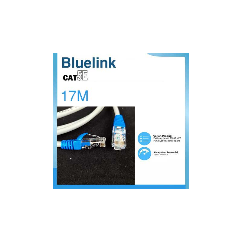 Kabel transmisi data dengan 2 bh konektor RJ-45 merek BELDEN/Commscope, 2 bH Plug boot, 17 meter kabel UTP Cat.5E merek EYOTA dan standar pemasangan internasional tipe straight TIA/EIA-568-B sehingga Anda dapat menggunakannya untuk kebutuhan koneksi kabel di infrastruktur LAN & internet.