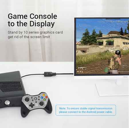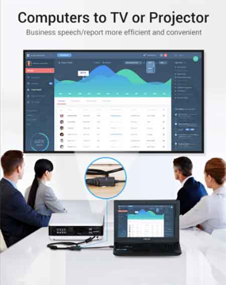 Memiliki 1 konektor input HDMI Male,1 port output VGA Female+3.5mm Aux Audio dengan colokan charger tenaga dan Resolusi up to 1080P@60Hz (1920×1080) sehingga Anda dapat menghubungkan dari port HDMI laptop/komputer PC/DVD ke port VGA pada Proyektor/Monitor/TV, ke speaker melalui kabel audio speaker 3.5mm, tambahan tenaga untuk range kabel yang lebih jauh dan tayangan 1080P HD.