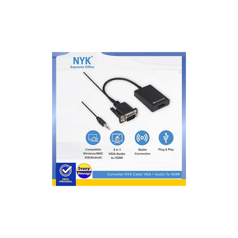 Memiliki input: 1 konektor VGA, 1 kabel Aux 3.5mm, 1 kabel power USB dan output 1 konektor HDMI Female sehingga Andadapat menghubungkan VGA Komputer/Laptop/Notebook Anda ke port HDMI layar monitor TV melalui kabel HDMI untuk mendapatkan kualitas tampilan video hingga 1080Pixel(full HD) beserta suaranya.