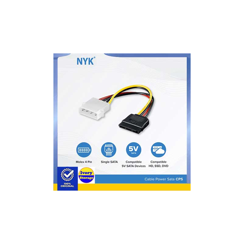 Kabel Power SATA Cabang panjang 16Cm memiliki 1 buah MOLEX Power konektor, 1 buah SATA Power Connector, 1 buah kabel kuning(+12V), 1 buah kabel merah(+5V) dan 2 buah kabel hitam(ground) sehingga Anda dapat menggunakannya sebagai kabel power untuk 1 buah Hardisk atau DVD drive jenis SATA.