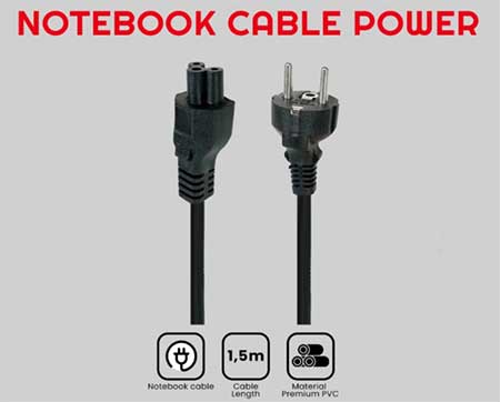 Kabel power lubang 3 panjang 1.5 meter dan dibuat dari bahan berkualitas sehingga menjadikan kabel ini kuat, awet, dan tahan lama untuk menghubungkan listrik PLN (AC 220V) ke adaptor Laptop/notebook.
