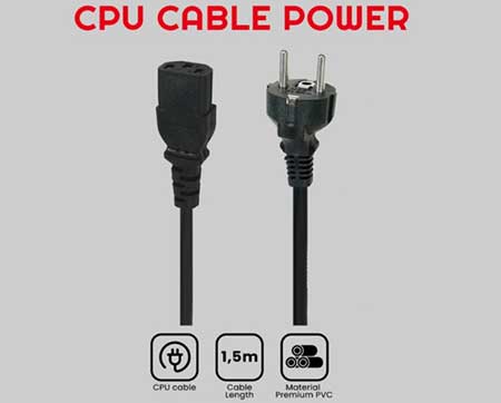 Kabel listrik panjang 1.5m dari bahan berkualitas sehingga menjadikan kabel ini kuat, awet, dan tahan lama untuk menghubungkan listrik PLN (AC 220V) ke power supply CPU Komputer(Desktop PC), layar monitor komputer dan printer dot matrix.