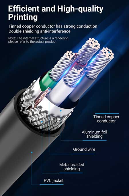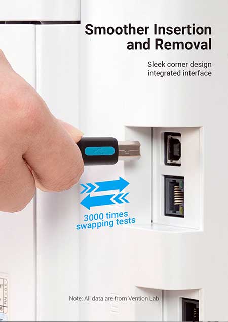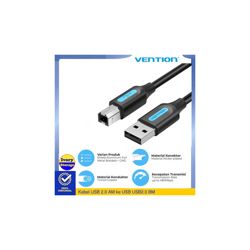Kabel Printer USB2.0 Vention 2M (USB2.0 AM-BM 2M) COQBH VER2.0 ini memiliki panjang kabel +2m dengan kepala konektor USB Male tipe A pada salah satu ujung kabel dan kepala konektor USB Male tipe B pada ujung kabel lainnya, Ferrite Core untuk kemampuan menyalurkan data dengan kualitas murni/rendah kebisingan/intervensi power & frekuensi dan kecepatan transfer data USB 2.0 yang minim re-transmit data sehingga Anda dapat menghubungkan perangkat printer ke Komputer/Laptop Anda sejauh 2m dengan baik.