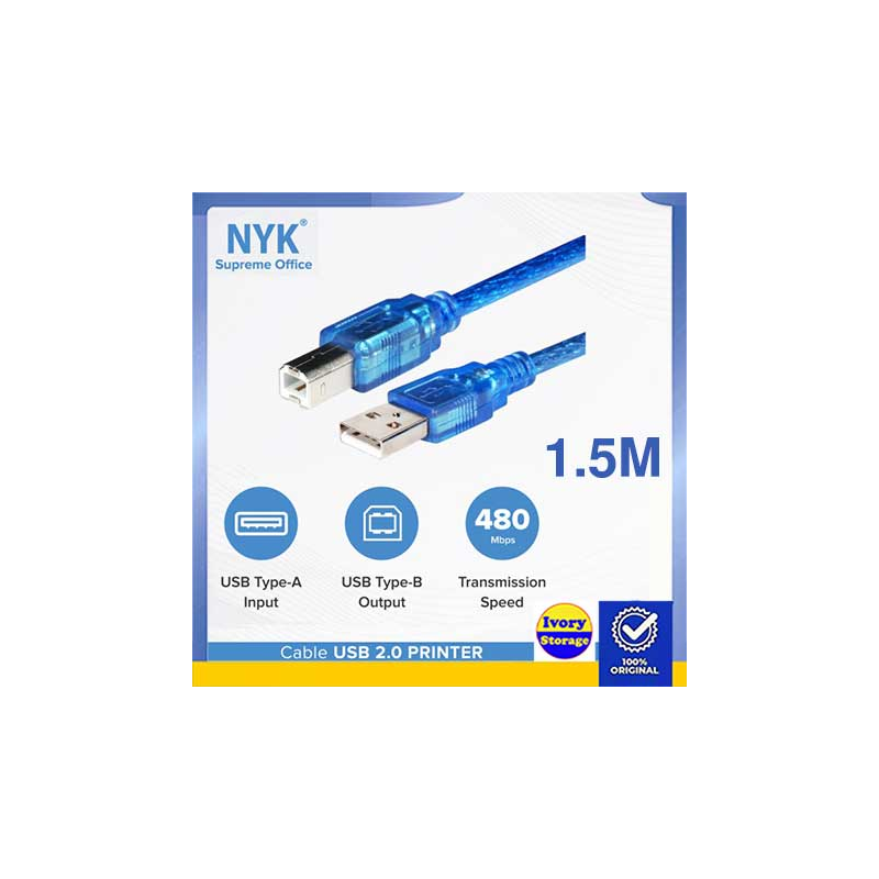 Kabel Printer 1.5M NYK USB2.0 (USB2.0 AM-BM 1.5M)