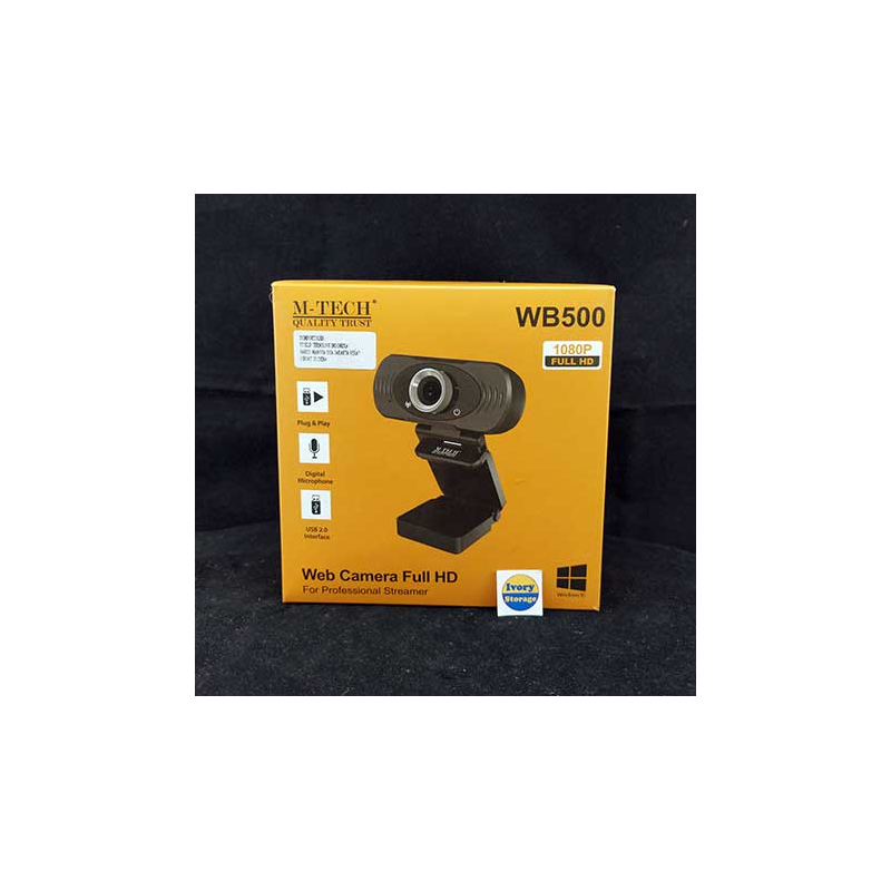 M-TECH WEBCAM WB500 1080P FULL HD merupakan WebCam dengan kualitas HD 1080p (1920x1080P), 30fps, pandangan 69 derajat, Fixed Focus, Built-in digital Mikrofon internal, koneksi USB2.0 dan panjang kabel 1.8m sehingga Anda dapat berkomunikasi dengan kualitas HD yang jelas/jernih/mulus, suara jelas, mudah dipasang dan nyaman.