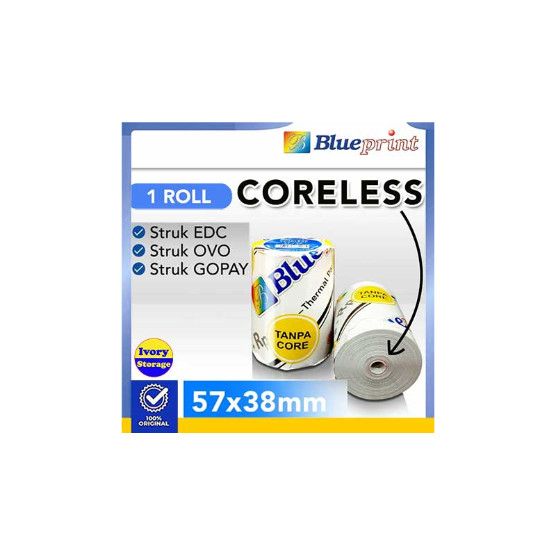 Kertas thermal struk 57x38 mm coreless(tanpa core) berbentuk gulungan yang dapat menyerap panas untuk mesin EDC/cash register(mesin kasir), POS printer dengan hasil cetak hitam 1,40 ~ 1,44 BW densitometer, bebas serbuk oksidasi di printhead sehingga Anda mendapatkan hasil cetak yang paling hitam dan tahan lama dari merek lain dipasaran, ketebalan mewah, usia pakai printhead printer lebih lama dan hemat uang dari pemakaian kertas yang lebih panjang dari merek lain(minim silinder karton ditengah) serta hemat uang dari kerusakan printer.