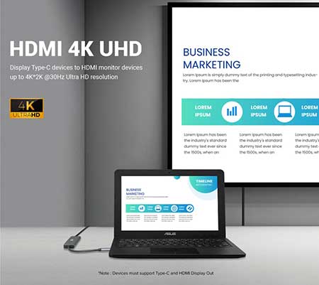 Memiliki 1 konektor input Type-C dengan kabel 14cm, output 2 bh USB HUB 3.0(transfer data 5Gbps), 1bh port HDMI 4K, card reader dan port eksternal power Type-c sehingga Anda dapat menghubungkan komputer/laptop Anda ke 2 buah alat koneksi USB 3.0, menayangkan Audio video ke monitor/proyektor/TV melalui port HDMI dengan kualitas hingga 4K, charging eksternal dan membaca memori MicroSD dan SD Card