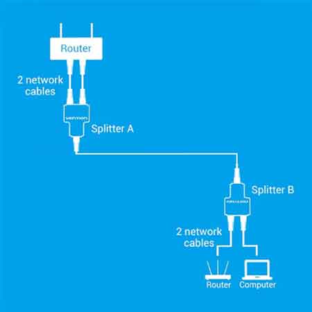 Connection 1 RJ45 in to 2 RJ45 Out ( Female )
