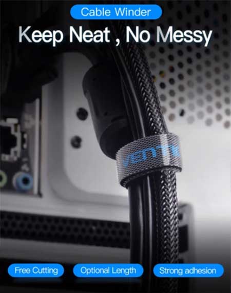 Kabel Ties VENTION 1M Cable Winder Velcro Organizer 1 meter KAABA dengan buckle, panjang 100cm, bahan nylon dan klip kabel sehingga Anda dapat merapikan kabel dan gadgetmu lainnya agar tetap rapih dan membuka-tutup terus menerus dan memotong panjang sesuai kebutuhan.