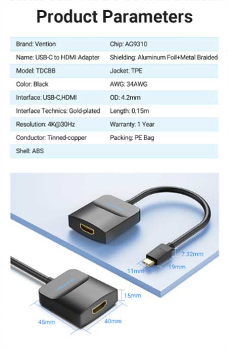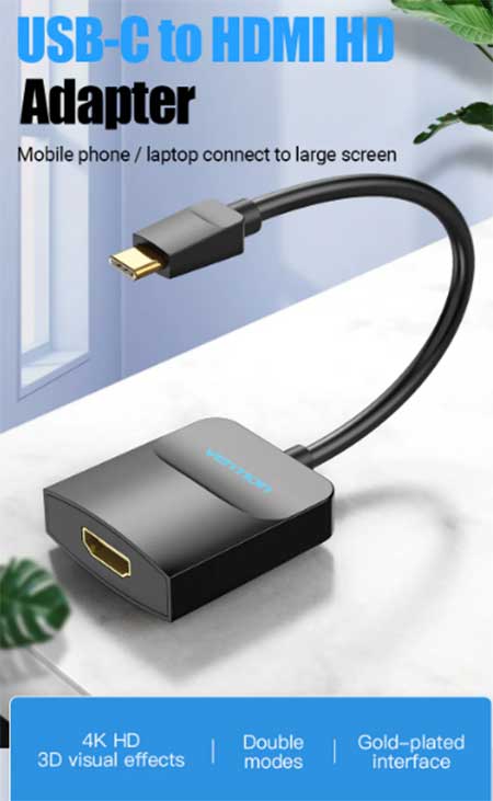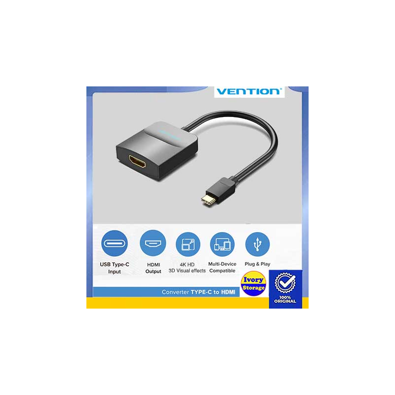 VENTION CONVERTER USB Type C KE HDMI (USB-C to HDMI) Memiliki 1 konektor input USB Type C (USB-C) male, output 1 konektor HDMI Female dan 4K HD/3D visual effects sehingga Anda dapat menghubungkan dari port USB-C Smartphone/ tablet/ laptop/ komputer Anda ke port HDMI pada Proyektor/ Monitor/ TV Anda.