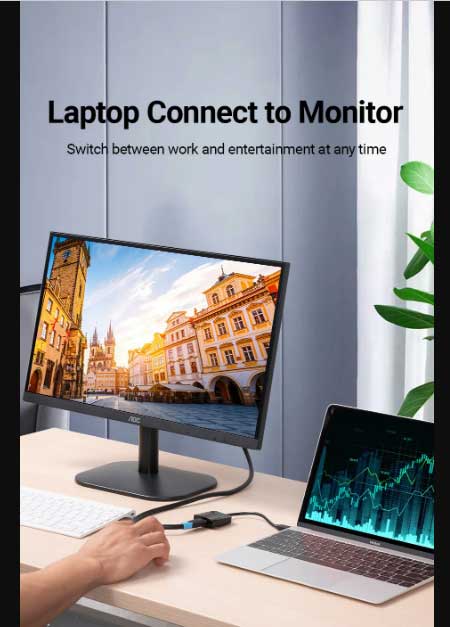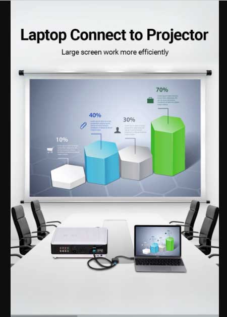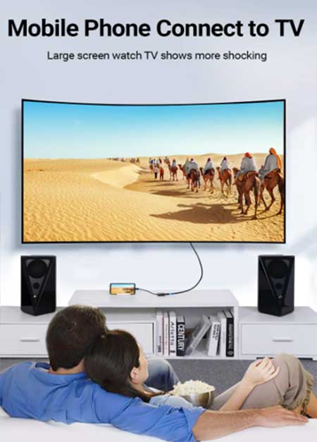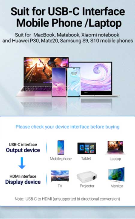 Memiliki 1 konektor input USB Type-C (USB-C) Male dan output 1 konektor HDMI Female dengan 4K HD/3D visual effects sehingga Anda dapat menghubungkan dari port USB-C Smartphone/tablet/laptop/komputer Anda ke port HDMI pada Proyektor/Monitor/TV Anda dengan kualitas gambar yang tajam