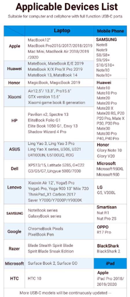 Connect to all Type-C Devices ,Such PC/TABLET/MOBILE PHONE ETC